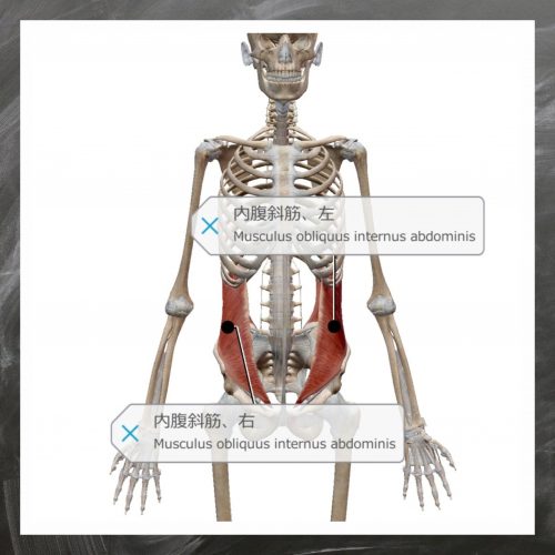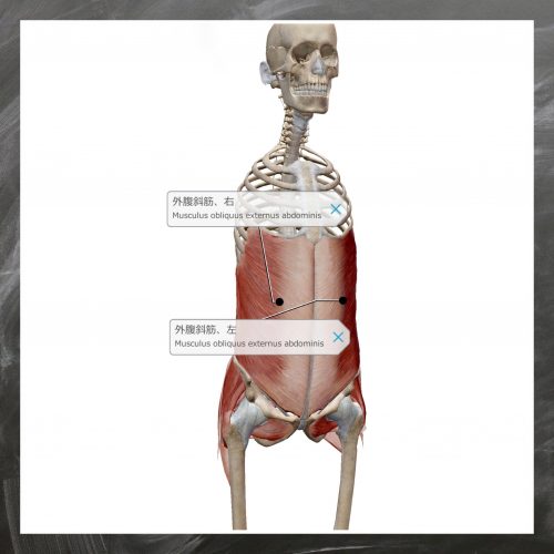 主に身体の横の筋肉(外腹斜筋・内腹斜筋)に加えて